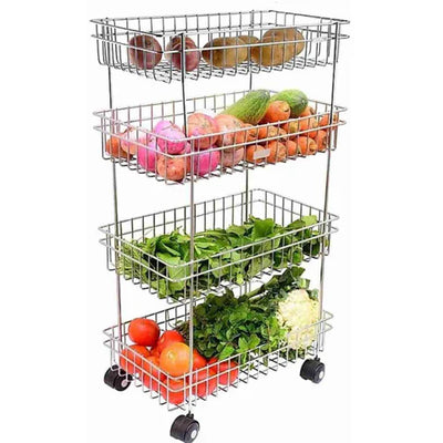 Golden bird International Stainless Steel Kitchen Trolley Portable Modern 4 Layer Vegetable & Fruit Wall Mounted Basket and Stand Kitchen Storage,Book Stand
