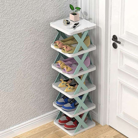 Kirtanworld 6 Layer Shoe Rack Design Lightweight Adjustable Plastic Foldable Shoe Cabinet Storage Portable Folding Space Saving Shoe Organizer Home and Office