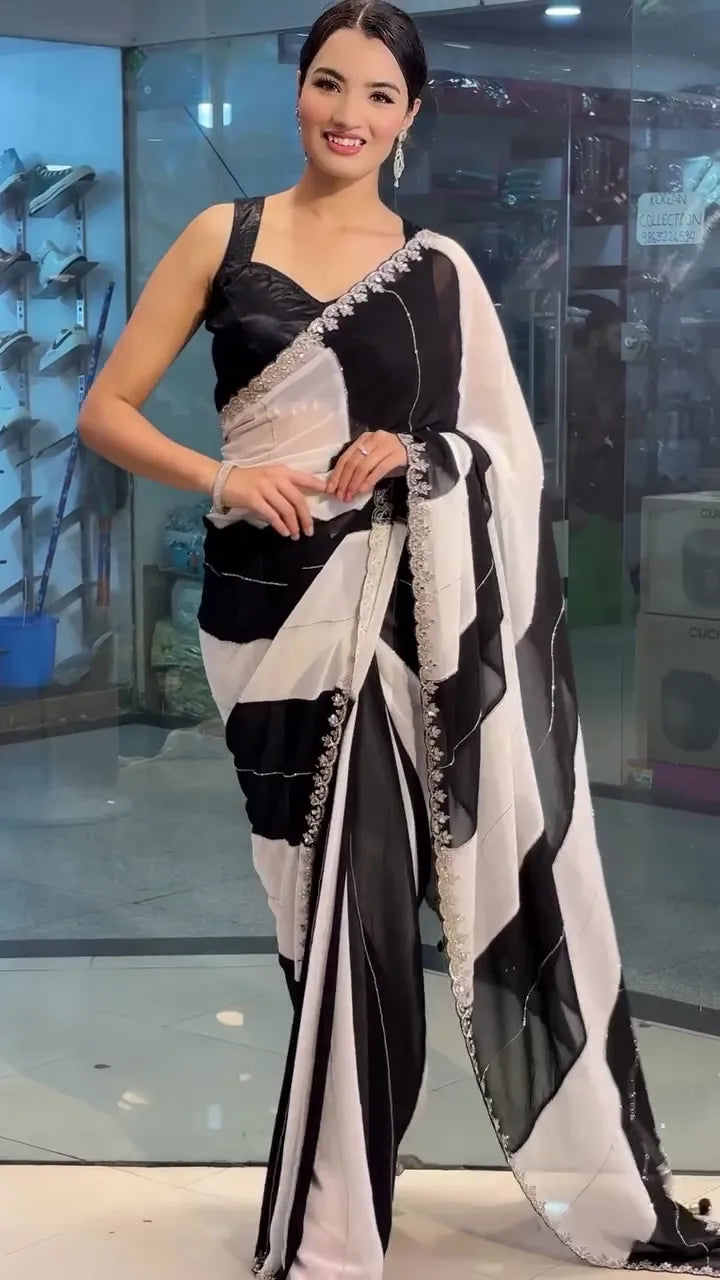 Elegant black and white printed saree – timeless style and effortless – Celebswikiusa
