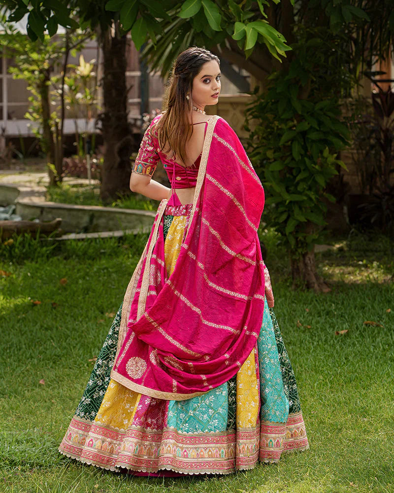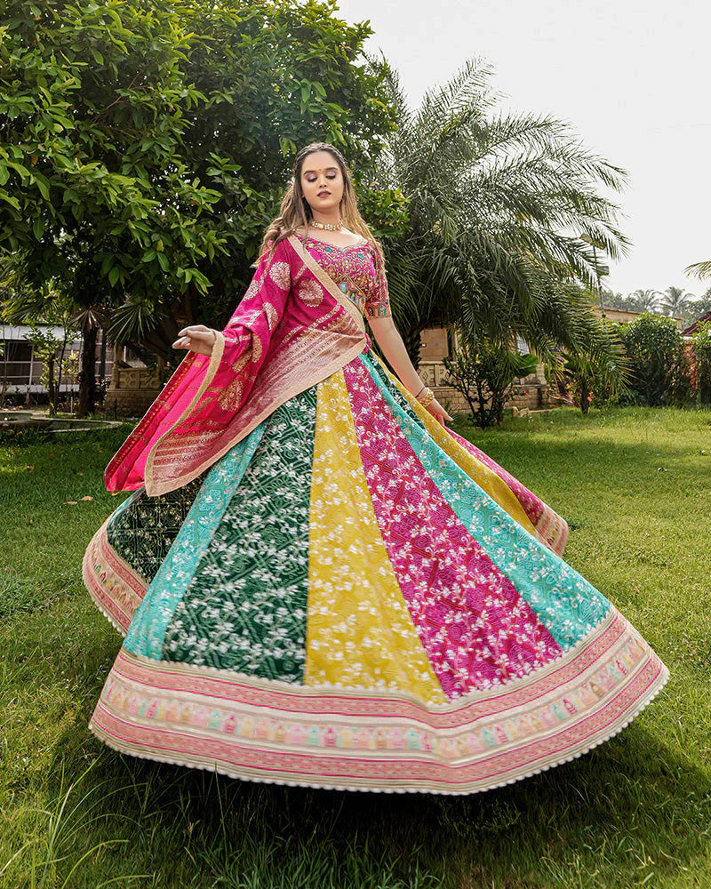 Embrace a kaleidoscope of colors and elegance with this Multi Color Embroidered Satin Silk Lehenga Choli. Crafted from luxurious satin silk, this ensemble promises both opulence and comfort. Adorned with intricate embroidery in a myriad of hues, it exudes vibrant charm and sophistication. Perfect for those who seek to captivate with grace and style at any special occasion or event.