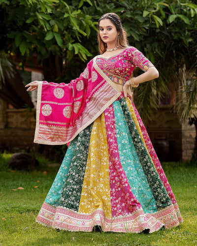 Multi Color Embroidered Satin Silk Lehenga Choli