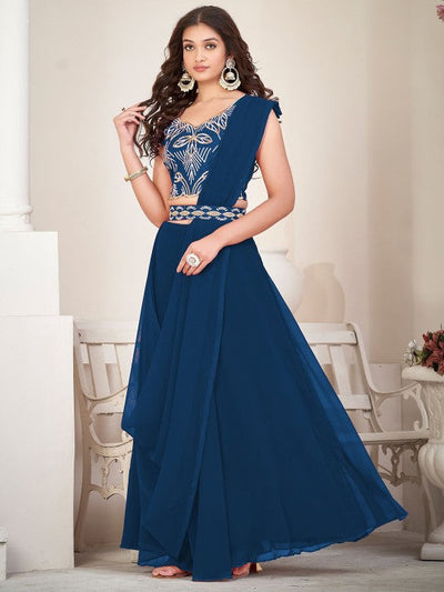 Embroidered Thread Work Semi-Stitched Lehenga & Unstitched Blouse With Dupatta