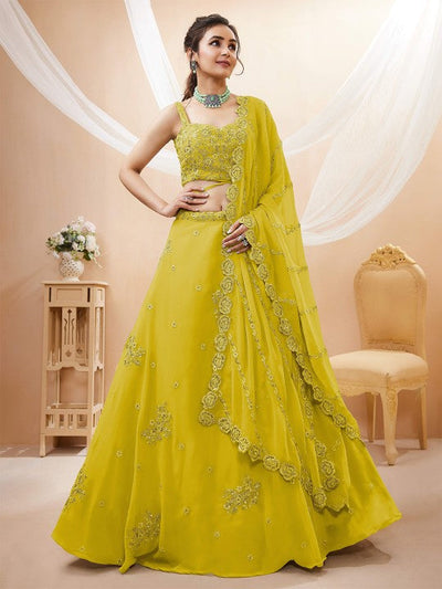 Woven Design Sequinned Semi-Stitched Lehenga & Unstitched Blouse With Dupatta