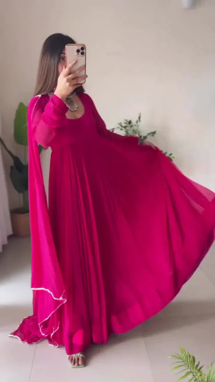 • Flattering Anarkali silhouette with intricate pleats that create a voluminous, flowing effect.