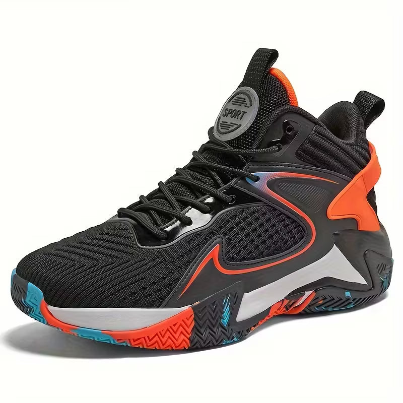 Vibrant Yellow Men's High-Top Basketball Shoes - Breathable Mesh, Non-Slip EVA Sole, Durable for Training & Sports, Lace-Up, All-Season Athletic Footwear