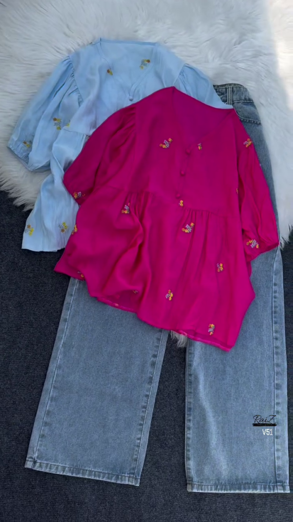 • Top Design: Casual peplum-style top with elegant floral embroidery for a chic yet relaxed look.